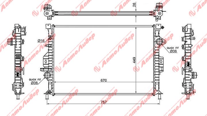 Радиатор охлаждения /AUTOLEADER для Ford Mondeo 2007- Focus 2011- S-MAX Galaxy 2006-2015 /без крышки; FD-C-MAX-1216; FD000307 FD0216