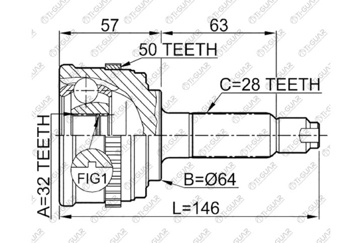 ШРУС наружный /TI-GUAR для Honda CR-V 1997-2000, Inspire UA# 1995-1998, Prelude 1996-2001 /ABS /32*64*28; TG-4433Z50; (HOE033A TG4433 HO033) HO33 HO033A50